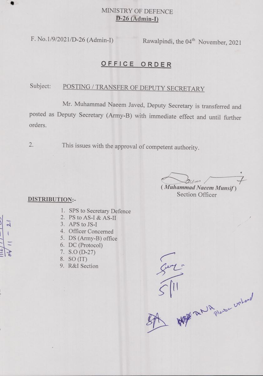 Charge Assumption - Muhammad Naeem Javed, Deputy Secretary (Army-B) |